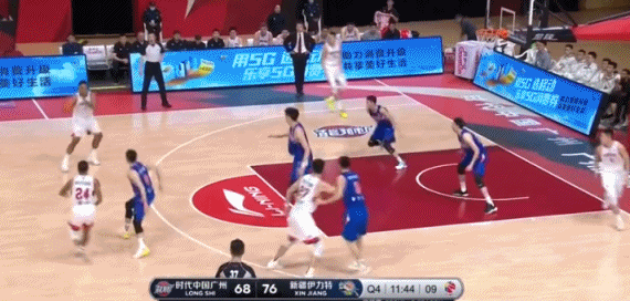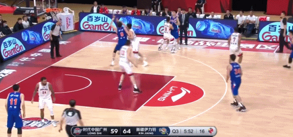 下面这个回合相当漂亮,祝铭震面对周琦的防守,一个后撤三分,稳稳投进。周琦虽然被晃得失去重心,但最后扑过来这下,还是彰显了臂展的优势!祝铭震没办法成为进攻发起点,广州双外援轮番登场,失误却开始增多,防守质量也急剧下降。