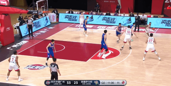 周琦下场之后,广州队抓住对手失误,快速推反击。贾明儒突破一条龙,身体对抗后高难度后仰打进。首节打完,广州31比21领先10分!