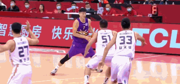 比赛首节,万圣伟在一次防守中“没刹住车”撞到自己队友,随后又反弹撞上了正在上篮的北控球员俞长栋,随即被吹防守犯规。