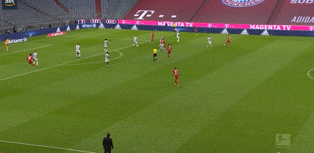 弗利克调整5名首发。理查兹、博阿滕、阿拉巴,戈雷茨卡、格纳布里出场,顶替帕瓦尔,聚勒,马丁内斯、托利索、科曼。开场9分钟,穆勒禁区右侧做球,莱万小禁区角上推射被施沃洛封出。