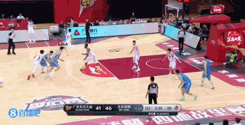 比赛第二节,朱彦西面对杜润旺的防守,飙中一记高难度压哨三分,将比分扩大到49-41,广东也立马喊了暂停。