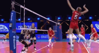 费多罗夫采娃扣球,被丁霞用头拦了回来