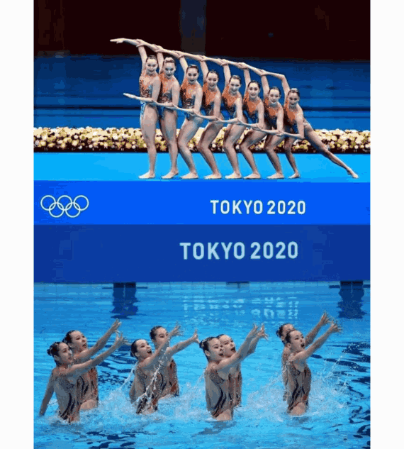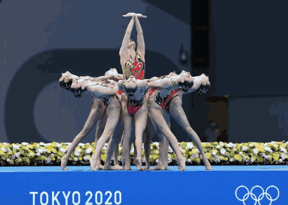 东京水上运动中心,由孙文雁、黄雪辰、呙俐、梁馨枰、尹成昕、冯雨、肖雁宁和王芊懿组成的中国花样游泳队以刚柔并济、英姿飒爽的《巾帼英雄》捧得集体项目银牌。