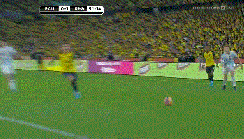 终场前,厄瓜多尔禁区左侧横传,球被阿根廷球员挡了一下,中路普拉塔头球攻门,球打在塔利亚菲科的手臂上,再被门将扑出。