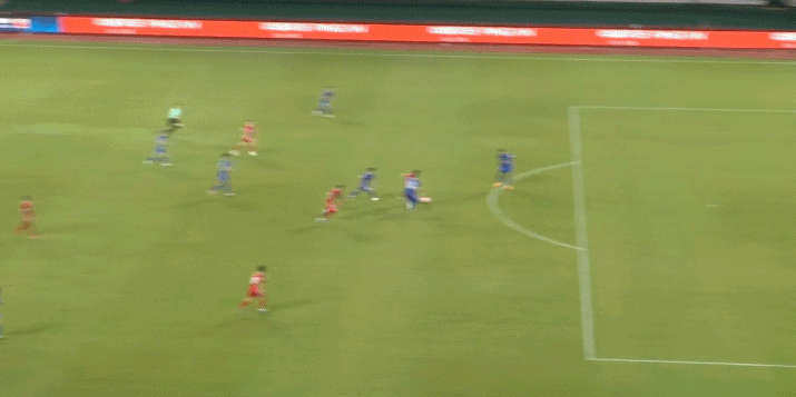 比赛第7分钟,杨意林在前场左侧制造对手犯规,梅州客家队赢得任意球几乎,27号科索维奇主罚直接射门,皮球偏出后门柱飞出底线。